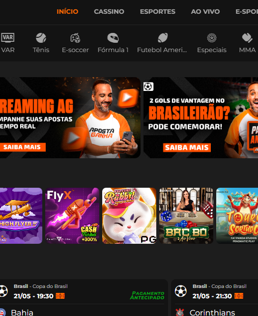 Na mesma plataforma, todos os jogadores têm acesso ao Cassino ApostaGanha, com milhares de jogos online e ao vivo.